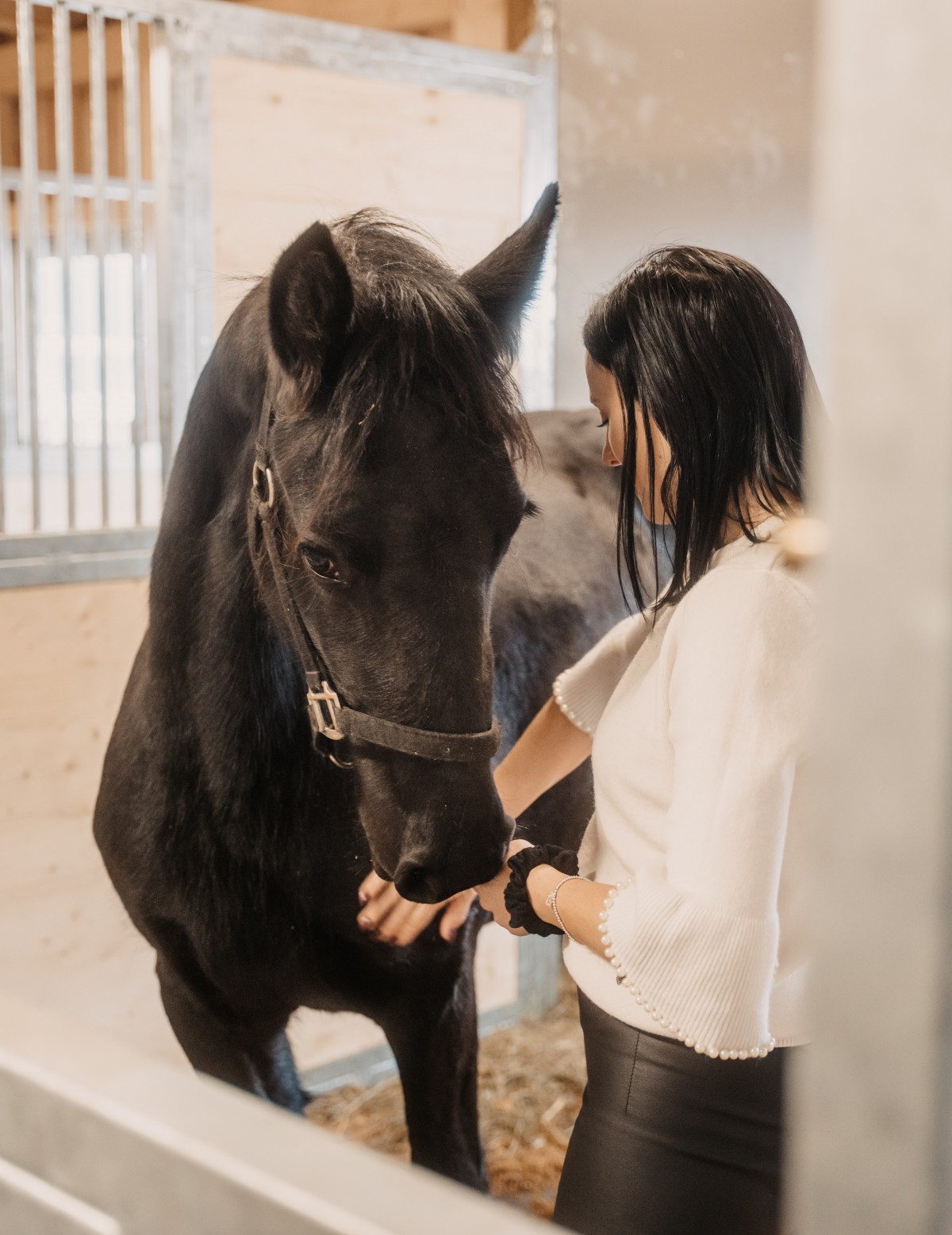 - Tierwohl auf höchstem Niveau: Der neue Stall setzt Maßstäbe. Unsere Pferde wohnen in hellen, großzügigen Innenboxen mit eigenem Paddock – Auslauf inklusive.