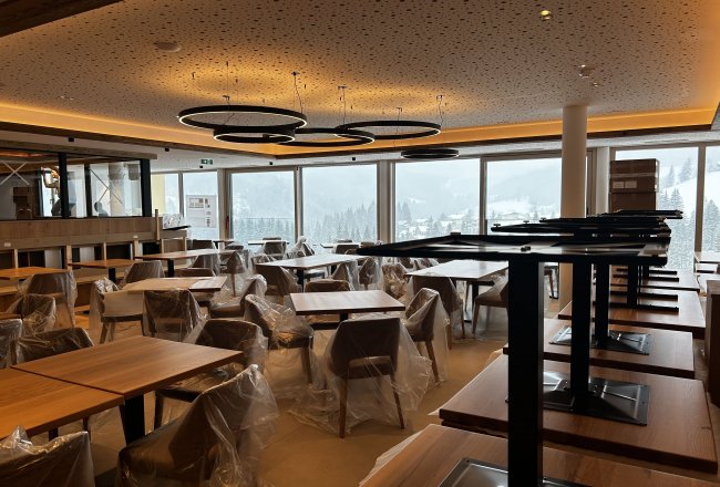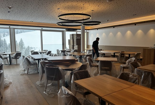 In den letzten Wochen hat sich wieder unglaublich viel getan! Besonders im Bereich Einrichtung ist unser Haus kaum wiederzuerkennen – im Restaurant entstehen bereits die ersten gemütlichen Sitzecken, das Buffet steht teilweise, und auch in der Hotelküche laufen die letzten Arbeiten auf Hochtouren.