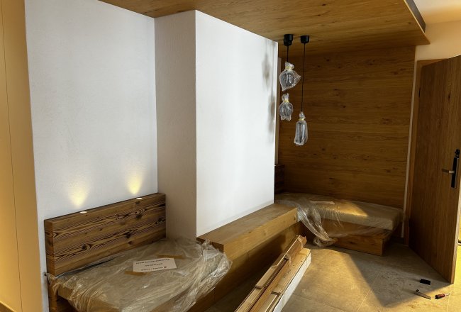 Im 2009er Gebäudeteil sind unsere neuen Familienzimmer fast fertiggestellt. Hell, geräumig und mit viel Liebe zum Detail gestaltet, laden sie zum Wohlfühlen ein.