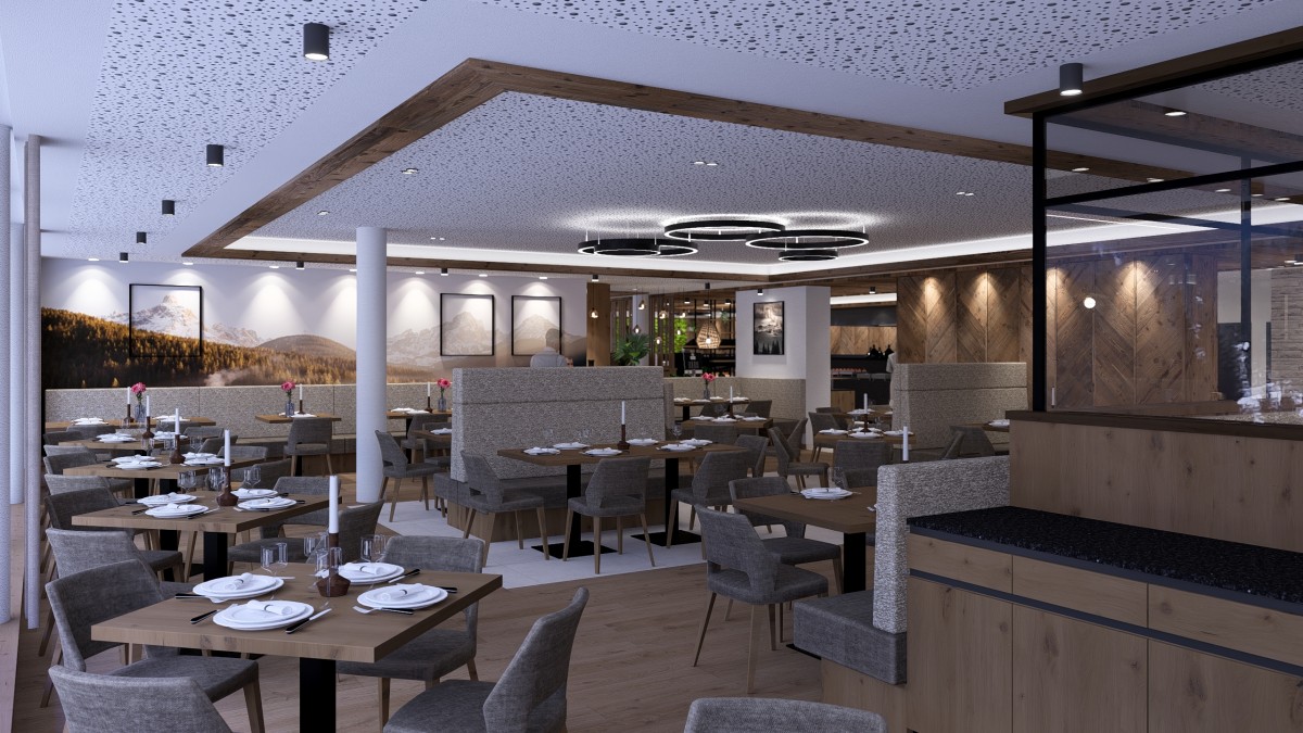 What once was will bloom anew: our restaurant is being redesigned to be more spacious, modern, and at the same time, even more inviting. Warm materials, plenty of natural daylight, and an elegant, timeless design will create an atmosphere where guests instantly feel welcome. The visualizations we already have in hand promise a stylish blend of contemporary chic and cozy comfort.