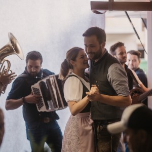 After a brief speech by our construction manager and the Reiter family, the celebration was officially opened. Lars fired up the smoker, while Maria and Andrea set up the buffet – kicking off the culinary portion of the evening. As delicious aromas drifted across the festival grounds, the band Filzmoos Power energized the crowd with their infectious sound and uplifting music.